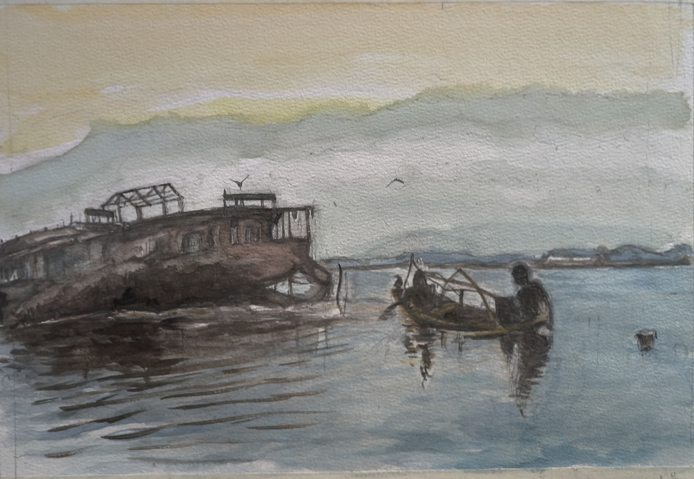 喀什米爾湖上晨曦船屋