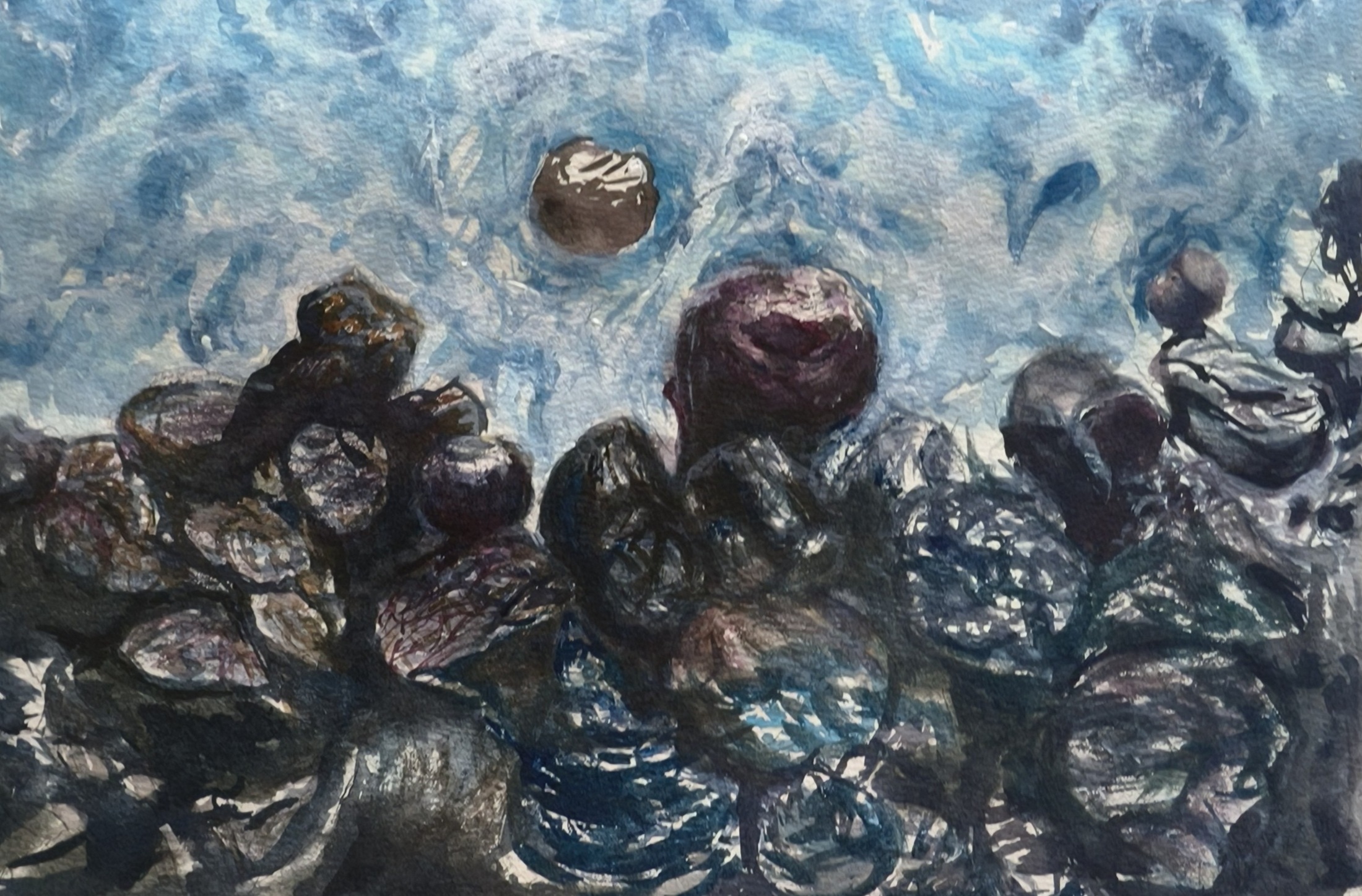 河邊浣衣(炭筆)